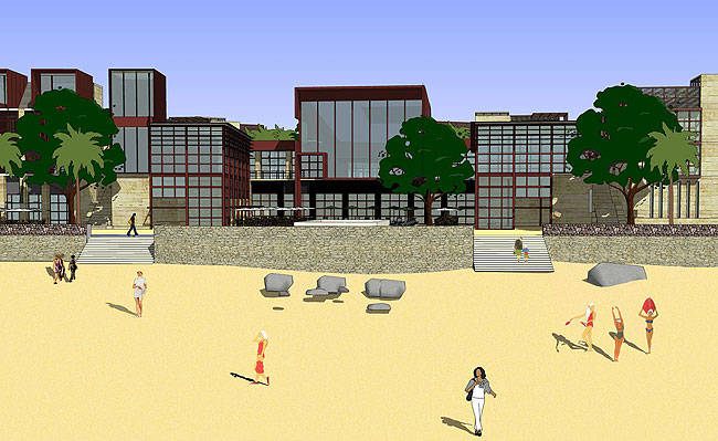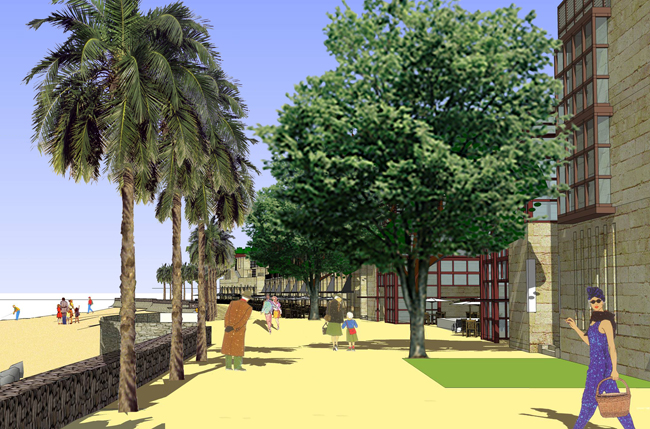基地面積34264平方米,呈近似直角三角形,南北向最大寬度約370米 ,東西向最大寬度為180米,最小寬度為43米,地勢(shì)平整,微向沙灘傾斜。由于位置臨海,坐擁寬闊的海景;太陽(yáng)灣沙灘岸線優(yōu)美,沙質(zhì)細(xì)膩;東北側(cè)礁石灘羅列形態(tài)優(yōu)美的天然礁石。