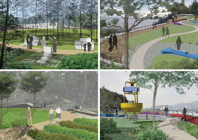 南入口(氣象訊息廣場(chǎng)):主要入口形象廣場(chǎng),串連海灣公園與篔筜湖景觀區(qū)的轉(zhuǎn)盤,設(shè)施語(yǔ)匯以“云型”作為氣象代表符號(hào),提供立即氣象訊息為特色。 |