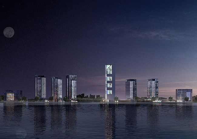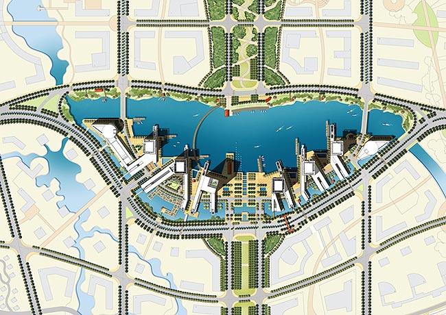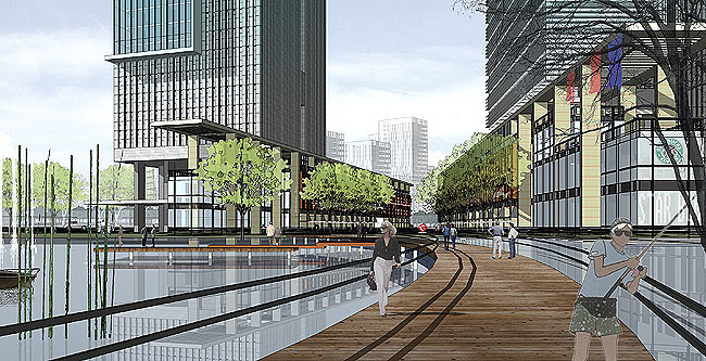 基于基地的地理特性,以打造魅力綠色科技島為概念出發(fā),規(guī)劃上采用島式偏水庫東岸集中的布局模式,強化本區(qū)成為科技園核心商業(yè)區(qū),營造多元豐富親水空間形態(tài),創(chuàng)造本區(qū)獨特地方感。