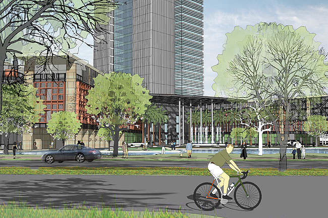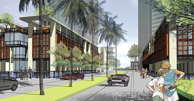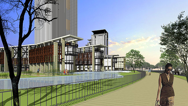 搭配清晰分流的車行路線,并可最大高效利用BRT系統(tǒng),推動綠色運輸理念。建筑規(guī)劃布局上善用本區(qū)山林湖海多元豐富的環(huán)境景觀資源,創(chuàng)造每個開發(fā)單元皆有良好開闊的景觀面向,確?;氐禺a(chǎn)開發(fā)價值,并基于未來開發(fā)內(nèi)容多元性及分期彈性,依建筑區(qū)位條件,采用立體混合使用布局方式。開放空間系統(tǒng)上善用島式布局布設(shè)親水岸的步行網(wǎng)絡(luò)及休憩廣場系統(tǒng),形塑具有啟發(fā)創(chuàng)意,促進聚合交流的空間氛圍,展現(xiàn)新世代科技園區(qū)新形象。