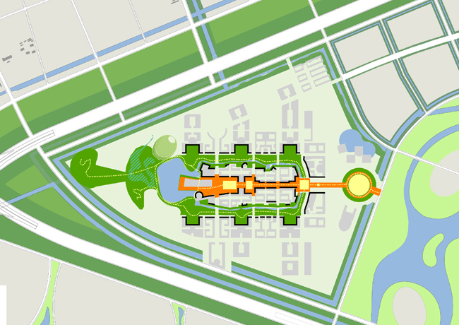 | · | 引入環(huán)形運(yùn)河景觀園廊,強(qiáng)力鏈接校內(nèi)外公園體系 | |