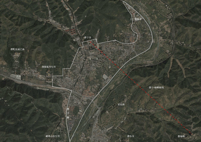 承德市中心的獅子溝橋是避暑山莊和周圍寺廟整體空間景觀的核心節(jié)點(diǎn),規(guī)劃范圍為北至須彌福壽行宮-普寧寺-上二道河子的山腳地帶,南至普寧路與武烈河交接處,東至武烈河沿岸,西至須彌福壽行宮-普寧路一線以東地區(qū),規(guī)劃總用地面積181公頃。