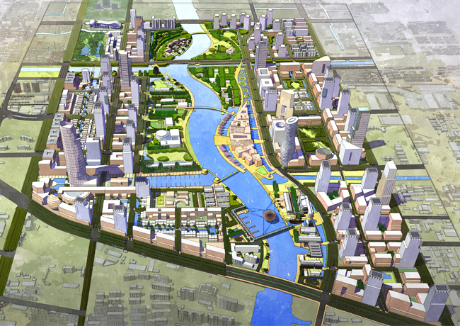 城市設(shè)計(jì)特色:以“可持續(xù)發(fā)展的現(xiàn)代水鄉(xiāng)”為主題。
