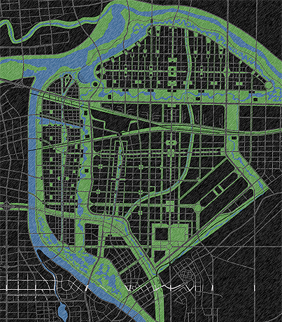 在城市空間的形塑上,在國際港務(wù)區(qū)及濱水生活新城之間規(guī)劃東西向、南北向各一、寬達(dá)八百米的城市生態(tài)綠谷,成為新城開放空間骨架。新城內(nèi)隨著城市發(fā)展軸線的移轉(zhuǎn)及區(qū)內(nèi)網(wǎng)絡(luò)化的軌道運(yùn)輸系統(tǒng)的建立,形成活力多元的城市商貿(mào)服務(wù)發(fā)展環(huán)帶。南面城市主要入口處,結(jié)合漢成帝昌陵遺址古跡公園及會展中心,組成未來西安國際港務(wù)區(qū)主要的城市大門,古跡遺址的文化價值,與國際會展中心展現(xiàn)的國際化、現(xiàn)代化表徵,打造新城區(qū)歷史與現(xiàn)代間容、科技與人文相互輝映的入口門戶意象。
