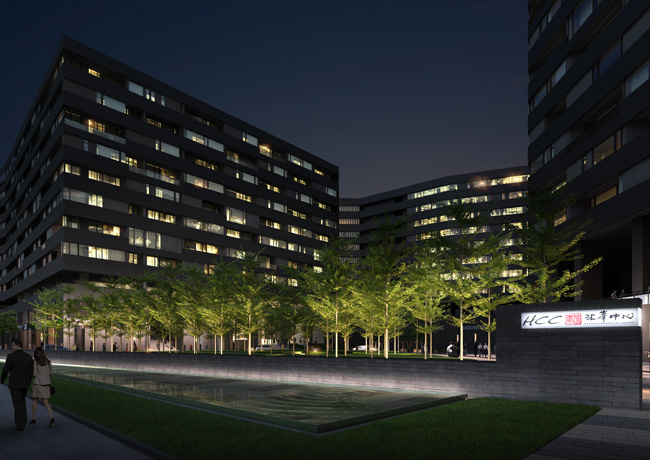 整體格調(diào)以嶺南名園——“可園”為范本,以高級灰為主色調(diào),期許傳達國人含蓄內(nèi)斂、寧靜致遠的精神訴求。挺拔端莊的小葉欖仁、尖葉杜英樹陣與建筑呈現(xiàn)的水平線條形成對比,延展的竹林柔化了冗長的側(cè)墻并展現(xiàn)出獨特的意境、開花地被點綴林間增加視覺的跳躍感。中庭一側(cè)辟得一片桂花園,秋日開花之際當芳香四溢、沁人心脾。