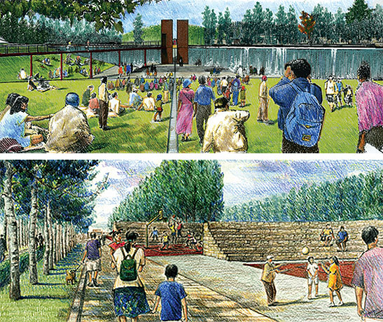 整體規(guī)劃將現(xiàn)有機場基地定位為全市性開放空間,將保留機場緣地及部分跑道空間,辟建傳遞地域文化氣息,釋放地域活力,刻劃地區(qū)機場歷史,強化全市市民與自然接觸機會的中央公園。